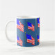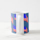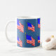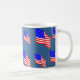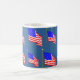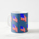 Enjoy a hot cup of coffe, tea or cocoa in this patriotic mug of waving American flags.