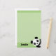 A set of stationary featuring a simple digital illustration of a waving black and white panda bear, sitting happily on a pale green background. You can customise the name at the bottom to really personalise it.
