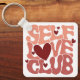 Wavy 70s Font "Self Love Club" Hearts Key Ring