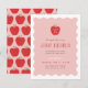 Created to coordinate with the "Wavy Apple" preschool graduation announcement collection, this modern, charming graduation invitation features a sweet, halftone apple illustration with a "Class of (Year)" message overlay. Beneath the illustration is the message "the apple of our eye", followed by the name of your child and their school, as well as the graduation party details. The text and design is placed over a solid pink background, with a playful, white wavy frame border. The back of the card features a coordinating halftone apple pattern.