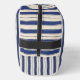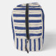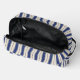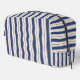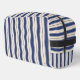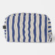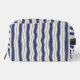 A classic with a twist, breezy and fresh, the original artwork by ZoeSPEAK on this Dopp Kit is an overall pattern of dark blue and white stripes, some wide and some thin. In the centre of the design, the stripes are wavy, rippled like water, giving the fabric an already "rumpled" look.