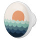 Abstract wavy blue ocean at sunset illustration with blue stormy waves and sun decoration for everybody who likes nature and simple elegant summery landscape designs.