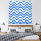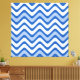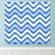 Features a beautiful pattern of blue and white waves. They are made up of curving lines, geometric forms that are entirely abstract but also inspired by the natural world. A clean and stylish design.