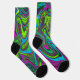 These Cool Colourful Sustainably Made Premium Crew Socks are made from Recycled Plastic Bottles and feature a Wavy Green, Blue and Magenta Abstract Art Abstract Art Design with Lime Green, Black, Purple, Hot Pink and Chartreuse Accents. The result is a colourful, groovy, abstract design that you will love!