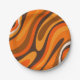 Wavy Loops Retro Abstract 1970s Brown and Orange Paper Plate
