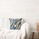 Wavy Loops Retro Abstract Pattern Blue and Beige Cushion