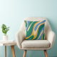 Wavy Loops Retro Abstract Pattern Blue Green Cushion