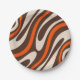 Wavy Loops Retro Abstract Pattern Brown and Orange Paper Plate