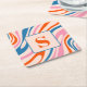 Wavy Loops Retro Modern Abstract Pattern Blue Pink Square Paper Coaster