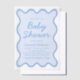 Wavy Modern Curvy Retro Dusty Blue Baby Shower Vellum Invitations
