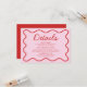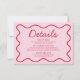 Wavy Modern Curvy Retro Pink Red Wedding Details Invitation