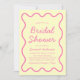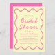 Wavy Modern Curvy Retro Pink Yellow Bridal Shower Invitation