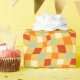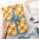 A beautiful wrapping paper featuring a wavy 1970s retro aesthetic chequered pattern design in a 70s colour palette of orange and yellow. Perfect for a 1970s theme party or retro bachelorette.