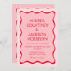 Wavy Retro Photo Red and Pink Wedding Invitation