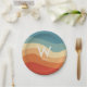 Wavy Retro Striped Monogram Personal Party Paper Plate