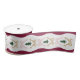 This charming customisable Christmas ribbon features a festive burgundy and white stripe and intricate ornaments and bow border.