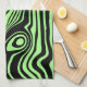 Custom Colours - Kitchen Towels with Abstract Warped Black and Green Wavy Striped Design - Customisable - or Choose / add your favourite background colour ! by MIGNED