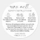 Modern Wax Melts Warning Label with elegant script font and wax melts care icons. This black and white safety instructions wax tart sticker includes the most important wax warming care information. This round safety label will add the finishing touch to your wax melt clamshells packaging design.