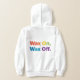 This t-shirt design features the iconic phrase "Wax On, Wax Off." in a multi-colour, bold font. The words are stacked, and each is a different vibrant colour, giving the design a playful, retro look. The design is simple and focuses on the humour and pop culture significance of the famous instruction from the classic martial arts film.
