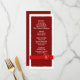 Wax Seal Wedding Menu / Program features a red wax seal with a one letter monogram thereon, against a red background with a white distorted border. Elegant and ideal for wedding receptions, anniversaries, engagements, etc. © Morning 6