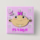 It a girl announcement button watching a butterfly.