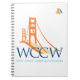 A spiral-bound notebook/journal featuring the West Coast Christian Writers bridge logo, and a tiny graphic of "Goldie," our mascot, up in the RH corner.