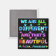 Inspirational quote of “We Are All DIFFERENT And That's BEAUTIFUL” with unique Autism puzzles, and colourful butterflies flying on the background to support and advocate Autism Awareness.