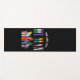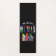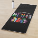 Social justice themed yoga mat features multi-colour "We are all human" text and hands representing the LGBTQTIA+ community