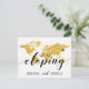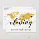 We are eloping announcement with elegant gold world map. Personalised postacr for your post elopement casual reception.