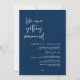 Elegantly announce your happily ever after with our modern navy blue theme wedding elopement celebration invitation card, "We are getting married". Tailored for couples continuing their love story, this invitation strikes a perfect balance of sophistication and charm, setting the scene for an unforgettable event. Featuring a modern contemporary script design, it adds a touch of timeless grace to your special day. Designed by the talented TeeshaDerrick, this invitation is a stylish expression of your enduring love.