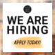 We Are Hiring Apply Today Business Window Cling with yellow gold paint brush stroke accent design.