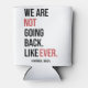We are not going back ever, vote for Harris, Kamala Harris for President, human rights for democrat, Election 24, Bold text on a grey background states "WE ARE NOT GOING BACK. LIKE EVER." with "HARRIS 2024" written below. Certain words are emphasised in red, conveying a strong, forward-looking message.
