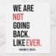 We are not going back ever, vote for Harris, Kamala Harris for President, human rights for democrat, Election 24, Bold text on a grey background states "WE ARE NOT GOING BACK. LIKE EVER." with "HARRIS 2024" written below. Certain words are emphasised in red, conveying a strong, forward-looking message.