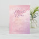 A dreamy pastel sky baby shower invitation with the theme "Cloud 9". This design features a pastel pink and purple cloudy sky background and the text, "we are on cloud nine". All of the text is customisable.