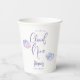 Dreamy and elegant baby shower paper cup featuring illustration of pink and purple clouds. The text says "we are on cloud nine."
