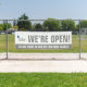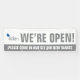Help encourage customers back to your business with this business signage banner to inform customers you are open. Simple bold mid grey and white banner. Reads We’re open! Background colour can be changed to suit your business colours currently grey and white. Ideal to generate foot traffic back to your business or service. Customise with your own square shaped logo and customer message details on the grey stripe. Designed by www.mylittleeden.com