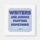 A funny writers are always plotting something cheeky humour slogan writing process working author slogan epic author self-published fiction or non-fiction writer design great writer’s gift genre slogan writer pride cartoon style motto design book author pride bookish aesthetic motto novel pin or magnet that’s perfect for writers of all genres. Get a funny author motto item today.