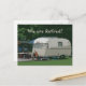 This postcard says 'We are Retired!' on top of an old camper, camping! The photograph of the old vintage camper has been enhanced and looks like a painting. This could be a humourous way to tell your friends & family you have retired and how they can contact you now. The back is an easy to customise template that says 'Home is, where the camper is!' and 'Contact us here:' so you can include any contact info. you have, such as cell phone and email address.