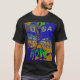I give wanted to give this a 4 instead of a 5 because these Basic DARK T0shirts run unexpectedly SLIM or Narrow. Which is great if you do not have a potbelly, but I have a paunch. It isn't the shirt's fault that I've got a beer belly. The design and shirt itself is a quality cotton shirt. The color is more of a deep purple, but still a very pretty color. The Basic DARK T-shirts run a bit SLIMMER than the Basic Ts. The neck is a fraction narrower (or seems to be narrower) also. I'm a paunchy middle-aged woman and my neck is 12 inches (31cm) thick and the neckline fell about the same as in the photo of the man, and I had the desire to tug it a bit. So if you're a thick necked man or like loose shirts, be aware these are slimmer shirts. Once I get rid of my lockdown paunch it'll look great. The shirt washed well in cold water with no apparent bleeding. We don't have a dryer, so it hung dry. Did not shrink. Love the colors and the design. The design looks smaller on my shirt than it does on the model on-line. But still, it looks good on the shirt. The printing looks as it does on the model, just the size seems fractionally smaller. Washed garment in cold water, hung dry and design appeared unaffected.