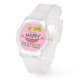 My granddaughter is graduating with her PhD on May 2nd and I can’t wait to give her this beautiful timepiece.  Such quality and workmanship. I’m glad I bought the clear because she can wear it with anything. Thanks so much for quality and fast shipping. Excellent.  Very bold print