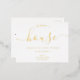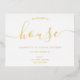 We bought a house! With a simple and minimalist real gold foil on white elegant script font typography moving announcement.