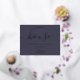 We bought a house! With a simple and minimalist real rose gold foil on navy blue elegant script font typography moving announcement.