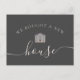 Cute design, in shades of grey, features your move details in modern script calligraphy.