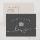 Cute design, in shades of grey, features your move details in modern script calligraphy.