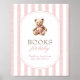 A charming place for book drop-offs. This sign features soft watercolor stripes, a vintage teddy bear, and elegant script — guiding guests where to leave the books they’ve brought for baby’s library.