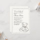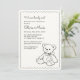 A softly elegant baby shower invitation featuring a classic hand-drawn teddy bear and scalloped border. Designed in a warm ivory palette with timeless typography, this “We Can Bearly Wait” invitation feels charming, gentle, and beautifully understated. Perfect for a refined baby shower with a neutral or traditional theme, this design balances whimsy and elegance in a way that feels thoughtful and elevated. Ideal for celebrating a little one on the way with a look that’s sweet, calm, and effortlessly chic.