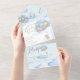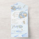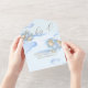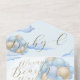 Celebrate your baby shower in style with this bear theme baby shower invitation. This baby boy shower invitation features a brown baby bear holding a bunch of balloons set on a blue sky with cloud background and finished with gold calligraphy font text. The text on this baby shower invitation reads "We Can Bearly Wait" perfect for your adorable bear theme baby shower. A special feature of this all-in-one baby shower invite is a tear-off RSVP that your guests can send back to you confirming their attendance and dietary requirements.