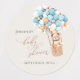 We Can Bearly Wait! :) This little bear is waiting for the big baby party, sitting in a hot air balloon built out of blue, gray and cream balloons. Whimsical watercolors and modern typography complement the design. Personalize this cute Bear Baby Shower item with your baby shower details easily and quickly, press the customize it button to further re-arrange, and format the style and placement of the text.