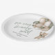 Celebrate your little one on the way with these adorable “We Can Bearly Wait” baby shower plates. Featuring a cute teddy bear holding pastel balloons, this charming design perfectly suits a neutral, woodland, or boho-style baby shower.