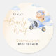 We Can Bearly Wait, Bear in Plane Baby Shower Classic Round Sticker